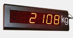 | Nagyméretű 7 szegmenses LED kijelző 6 számjeggyel. A kijelző szoftvere adaptív eljárást tartalmaz, melynek köszönhetően képes elemezni és felismerni különböző soros adatformátumokat, és megjeleníteni a súlyértéket, a hozzákapcsolt mérlegelektronika típusára vonatkozó megkötések nélkül. Az alkalmazott adatátviteli szabvány választható: RS-232 vagy RS-422. A jelenleg rendelhető beltéri változat festett acél dobozolással készül. Táplálás: 220V 50Hz |